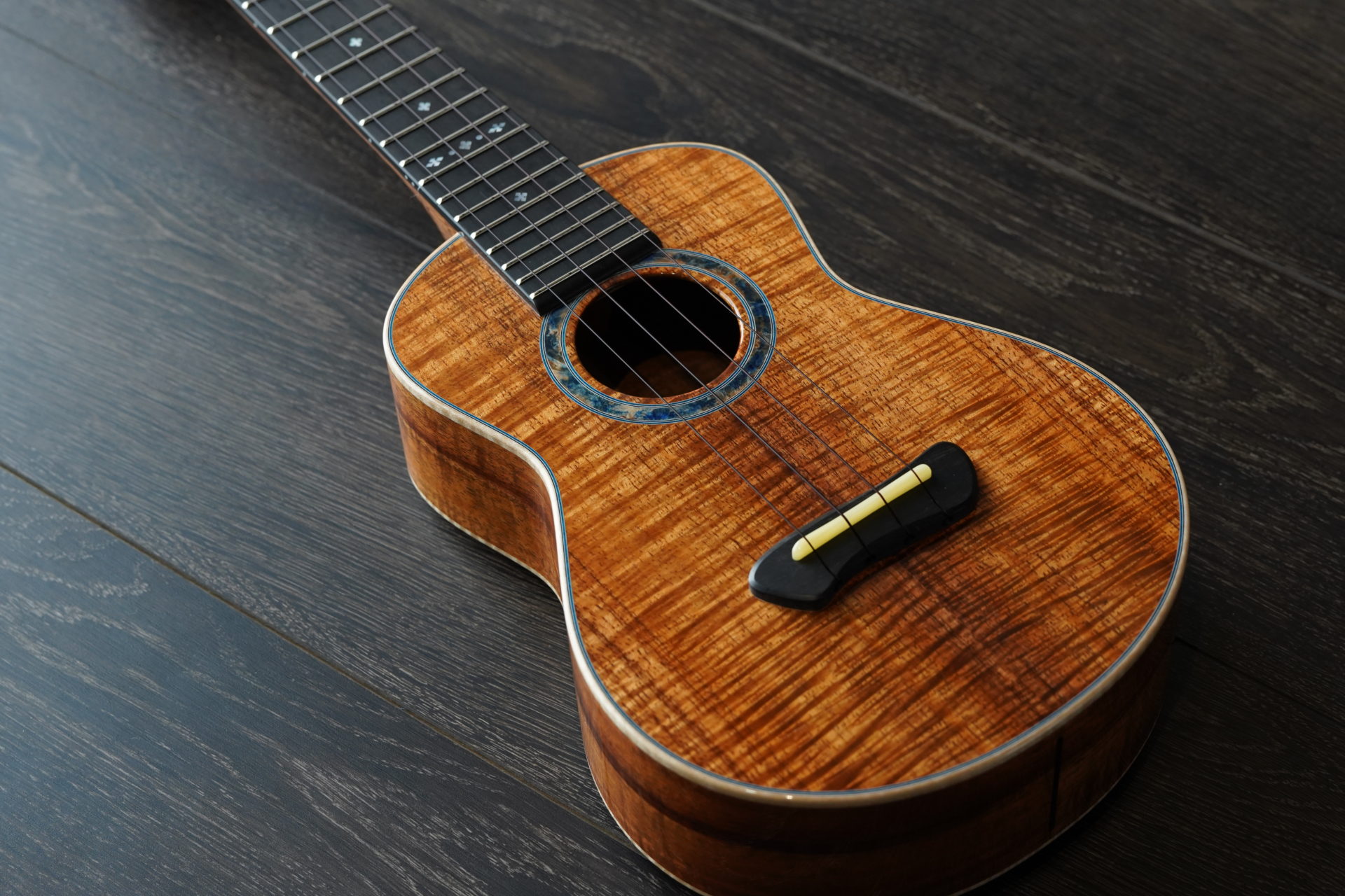 一般的なコンサートサイズから少し小さいボディですが、深く、柔らかい一番美味しい音色を引き出すためのボディシェイプになっています。