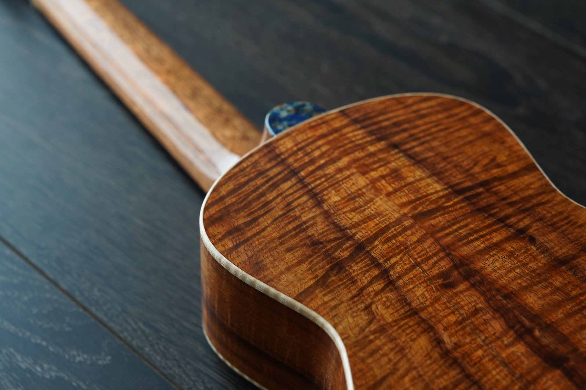 一般的なコンサートサイズから少し小さいボディですが、深く、柔らかい一番美味しい音色を引き出すためのボディシェイプになっています。