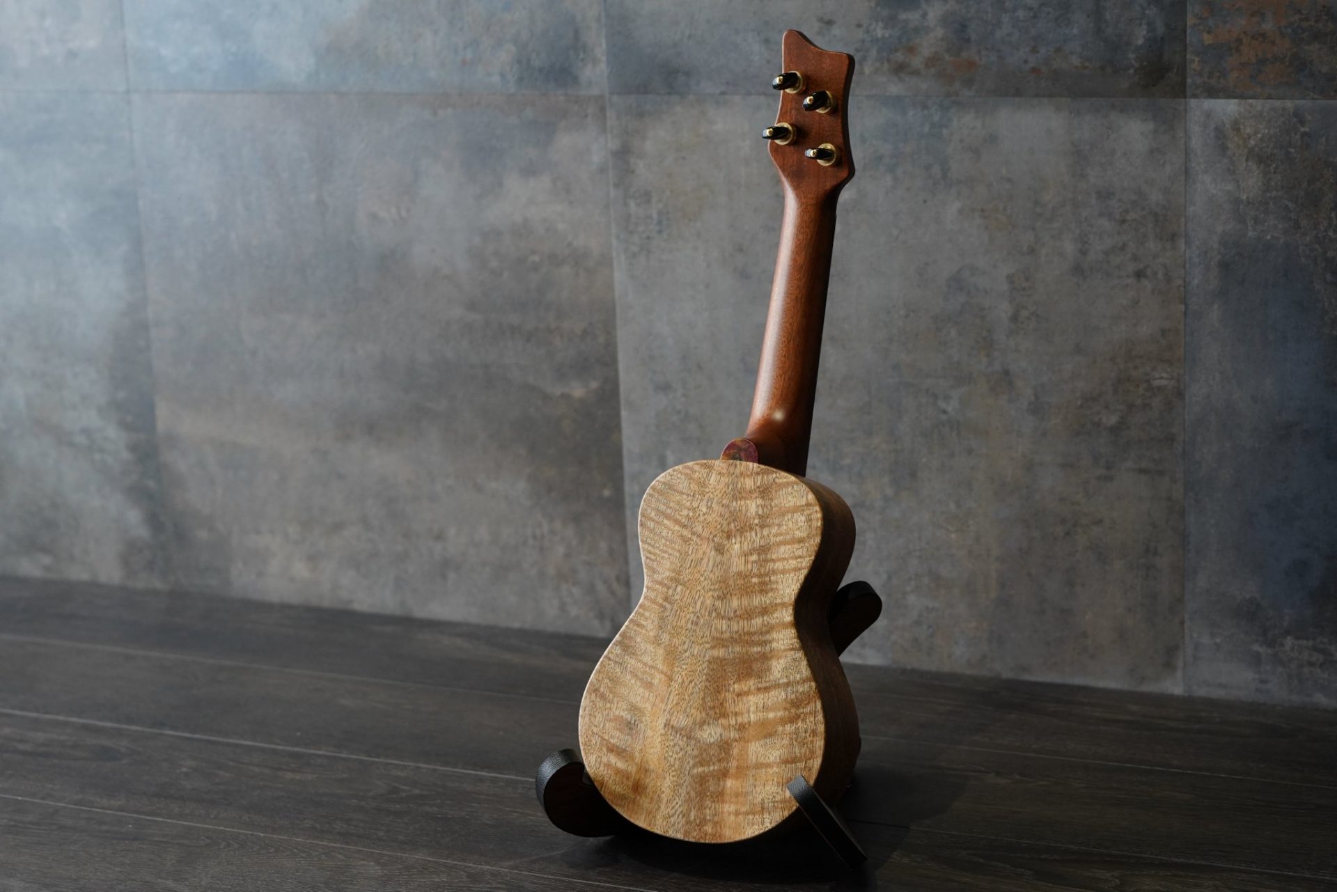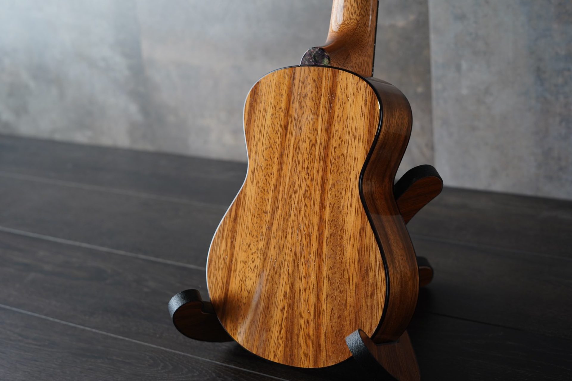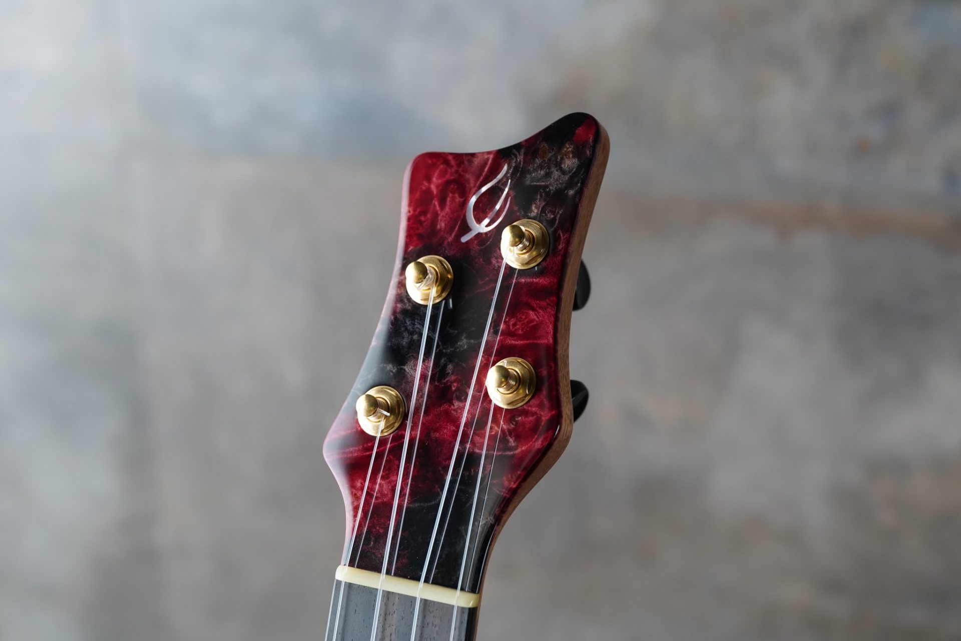 ソプラノモデルでは標準的な345mmスケールを採用し、ネックジョイント位置は12フレットです。ボディの形状も一般的なソプラノボディとほぼ同じ大きさとなっていますが、音色と美しさを両立するための黄金比を使ったボディデザインとなっています。