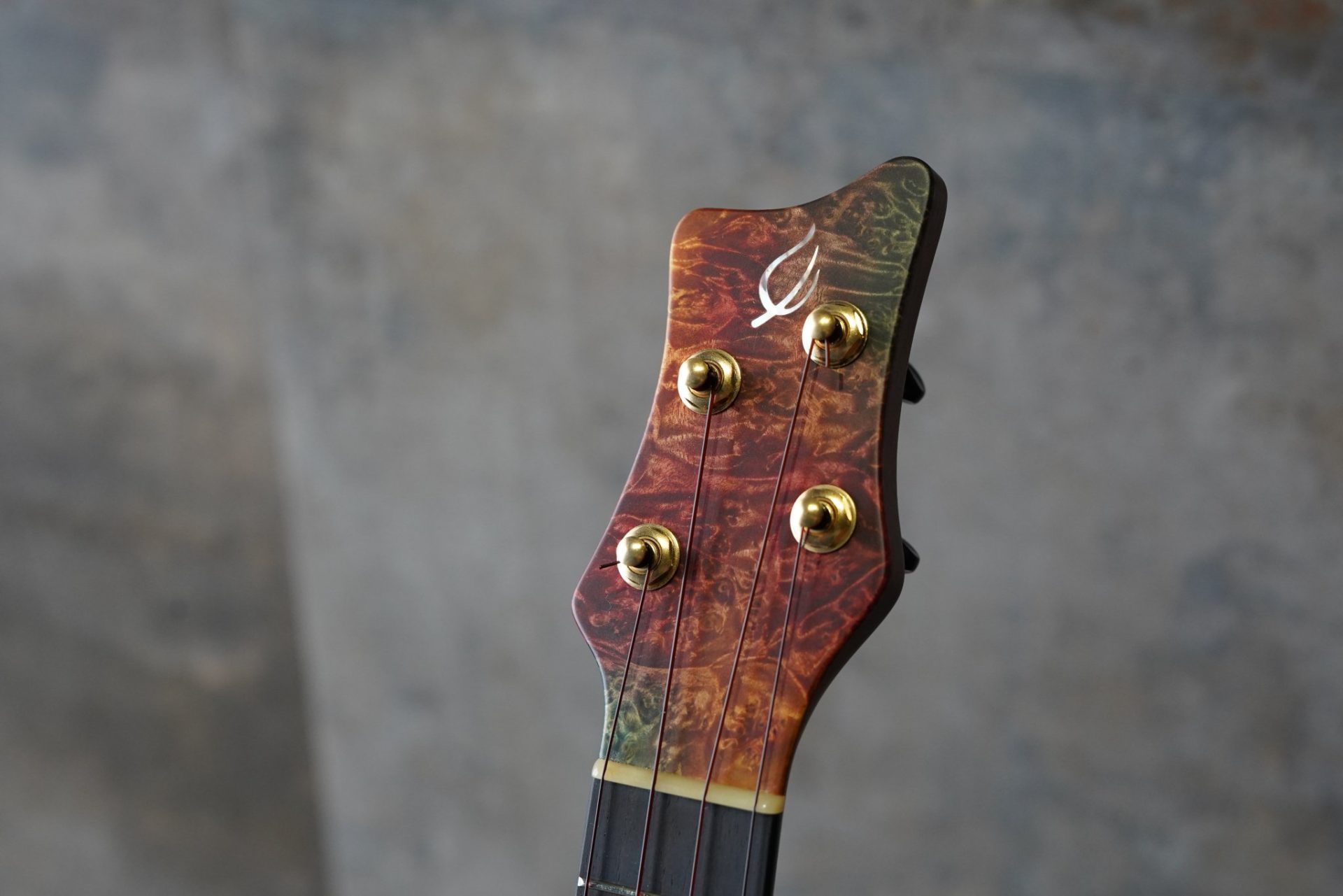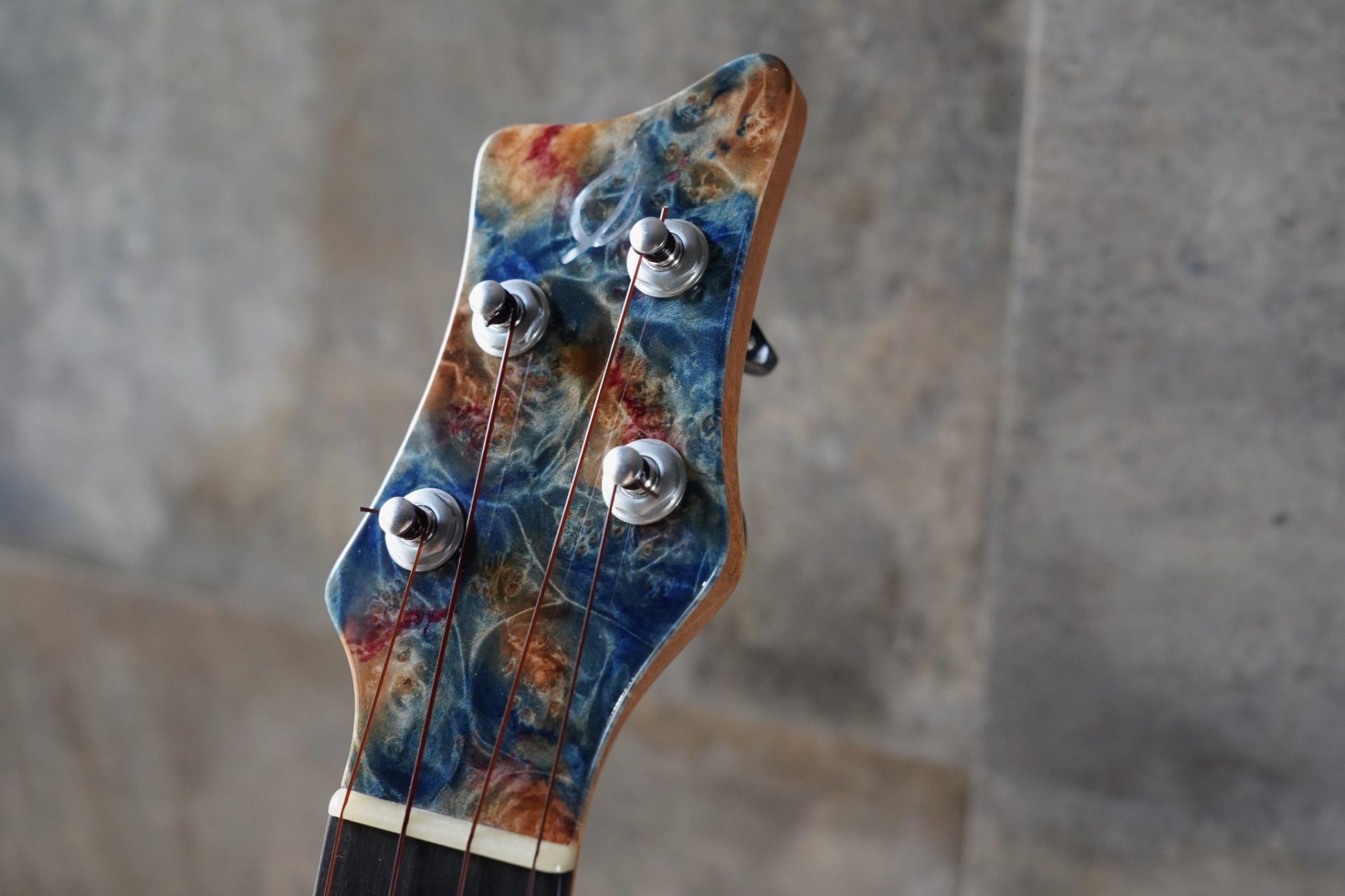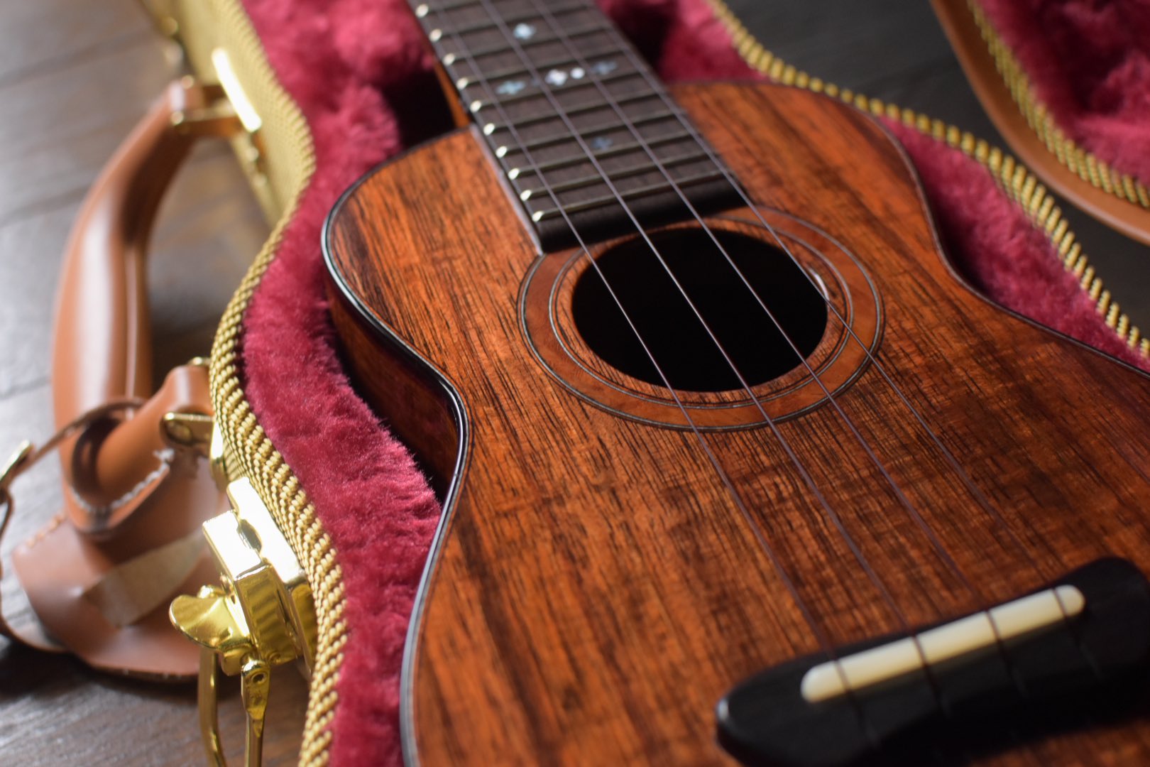 ソプラノモデルでは標準的な345mmスケールを採用し、ネックジョイント位置は12フレットです。ボディの形状も一般的なソプラノボディとほぼ同じ大きさとなっていますが、音色と美しさを両立するための黄金比を使ったボディデザインとなっています。